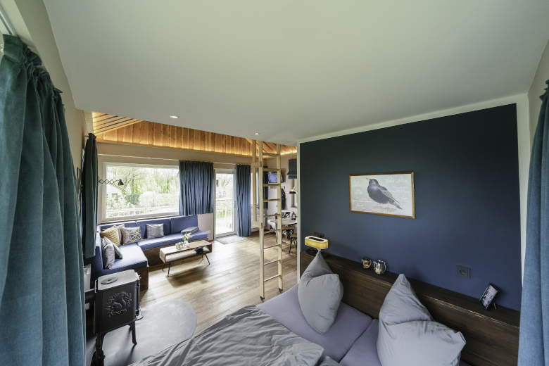 Die Wohnfläche beträgt 30qm. Es gibt außerdem eine 10qm große Terrassenplattform und im 1. OG einen kleinen, gemütlichen Schlafbereich, in dem bei mehr als zwei Personen noch zwei weitere Personen auf 90x200cm Matratzen schlafen können. Das Star-Haus liegt in 1. Reihe zum wunderschönen Waldbad.  Erleben Sie die einzigartige Möglichkeit, direkt vom Star-Haus die heimische Vogelwelt zu beobachten. Der Ruhebereich der Tiere ist auch nicht weit. Natur pur! Der Blick auf den Deich lohnt sich natürlich auch, schauen sie den großen Pötten auf ihren Routen zu. Eine wundervolle Terrassse mit Strandkorb rundet den Wohlfühlfaktor ab.